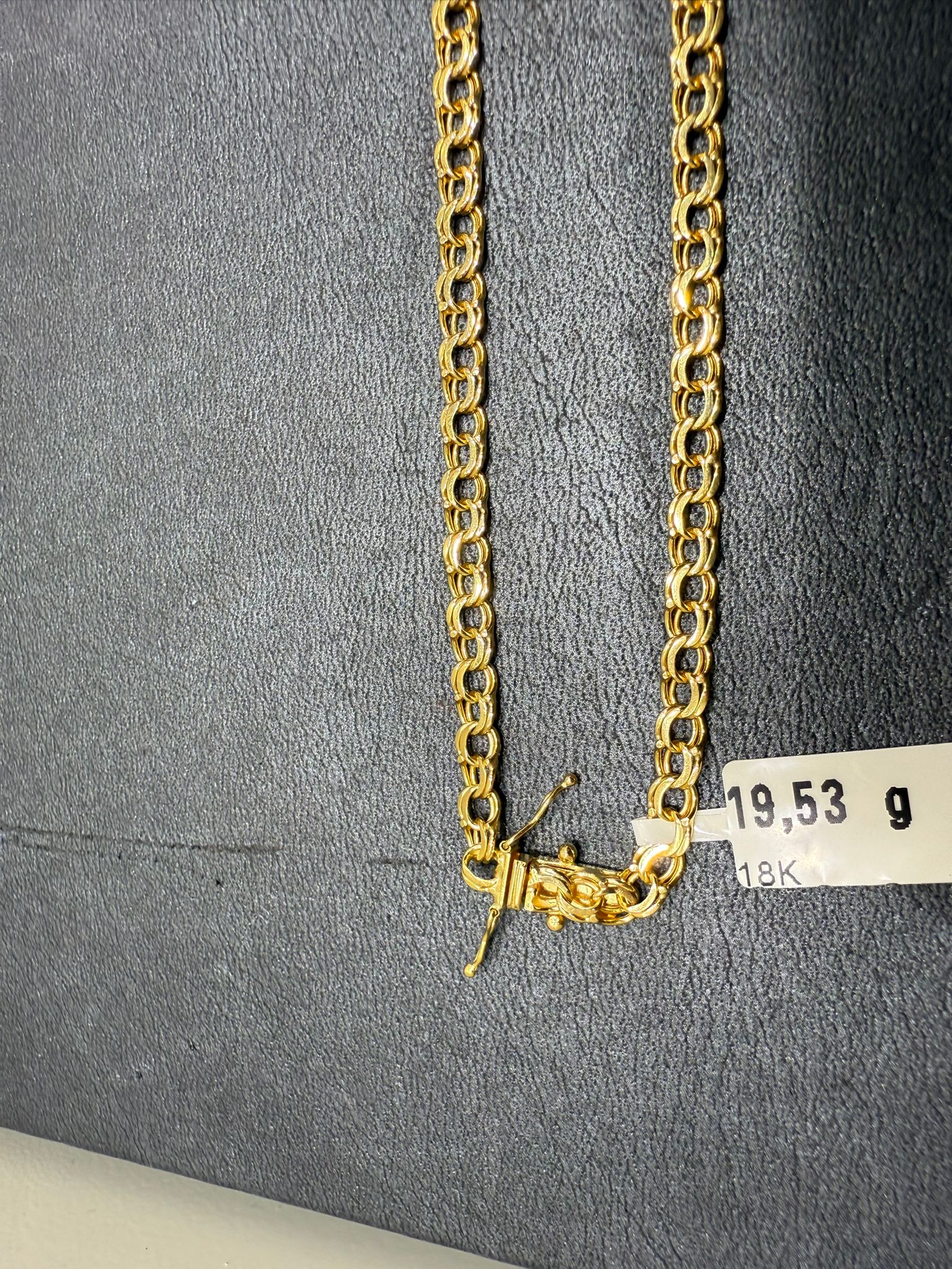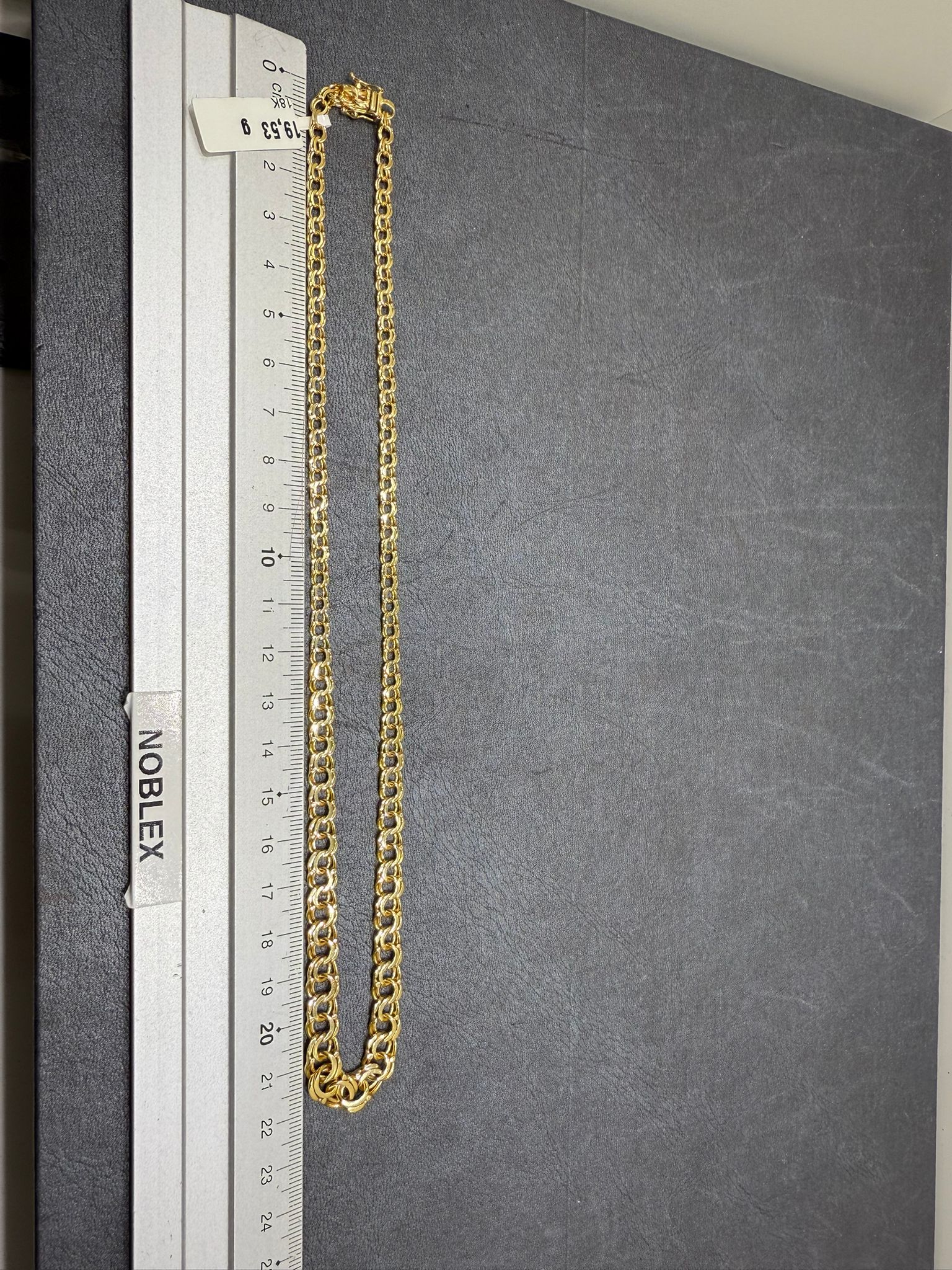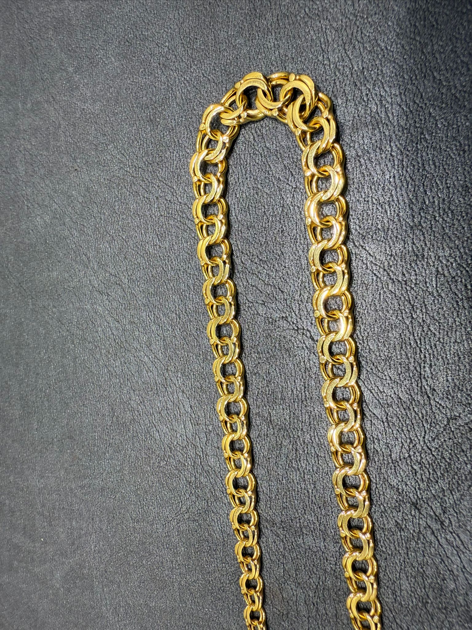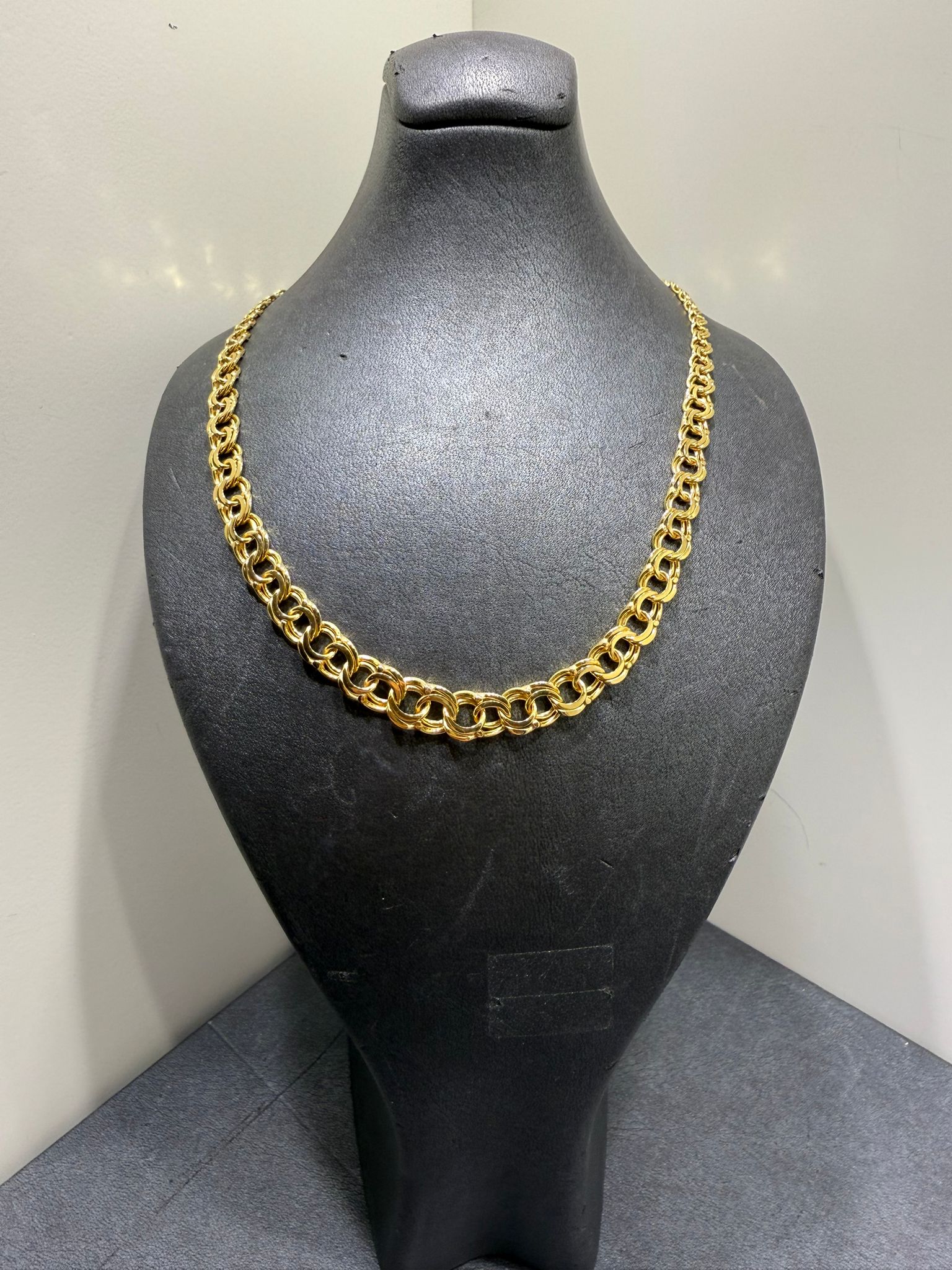 Detta eleganta halsband i klassisk bismarck-design är tillverkat i äkta 18K guld och utstrålar både styrka och exklusiv skönhet. Den täta och karakteristiska länkningen ger halsbandet en lyxig tyngd, vacker glans och ett smidigt fall runt halsen.