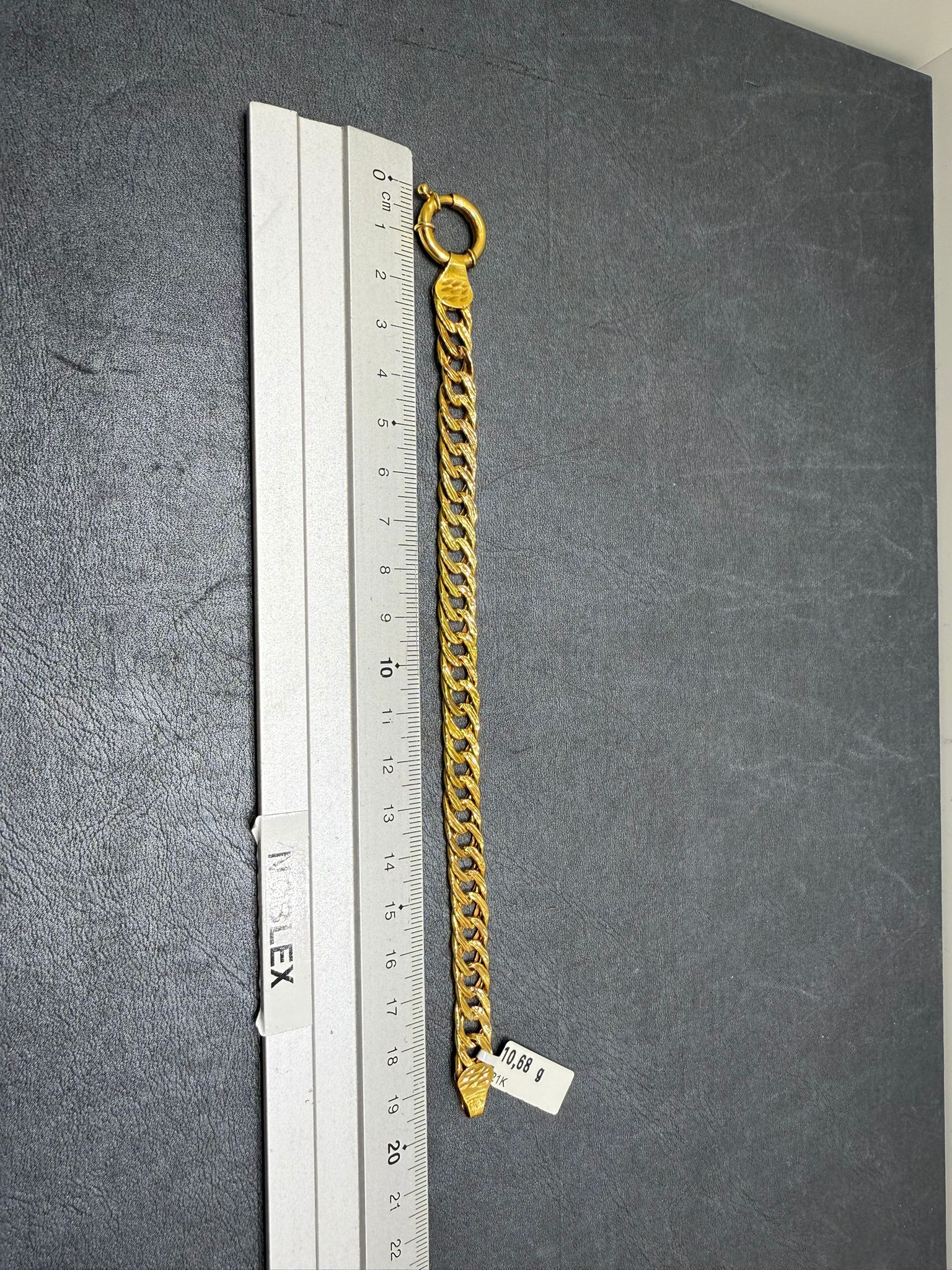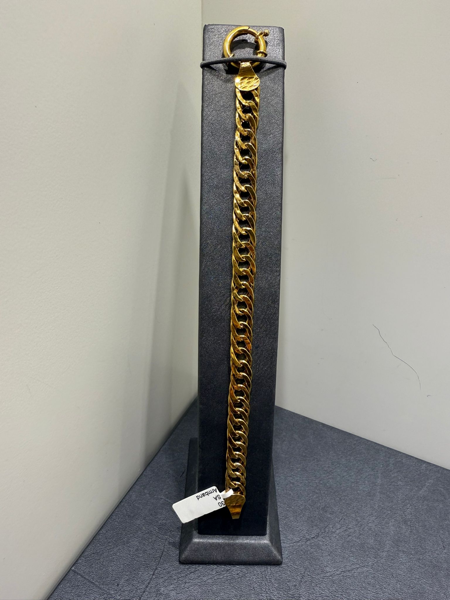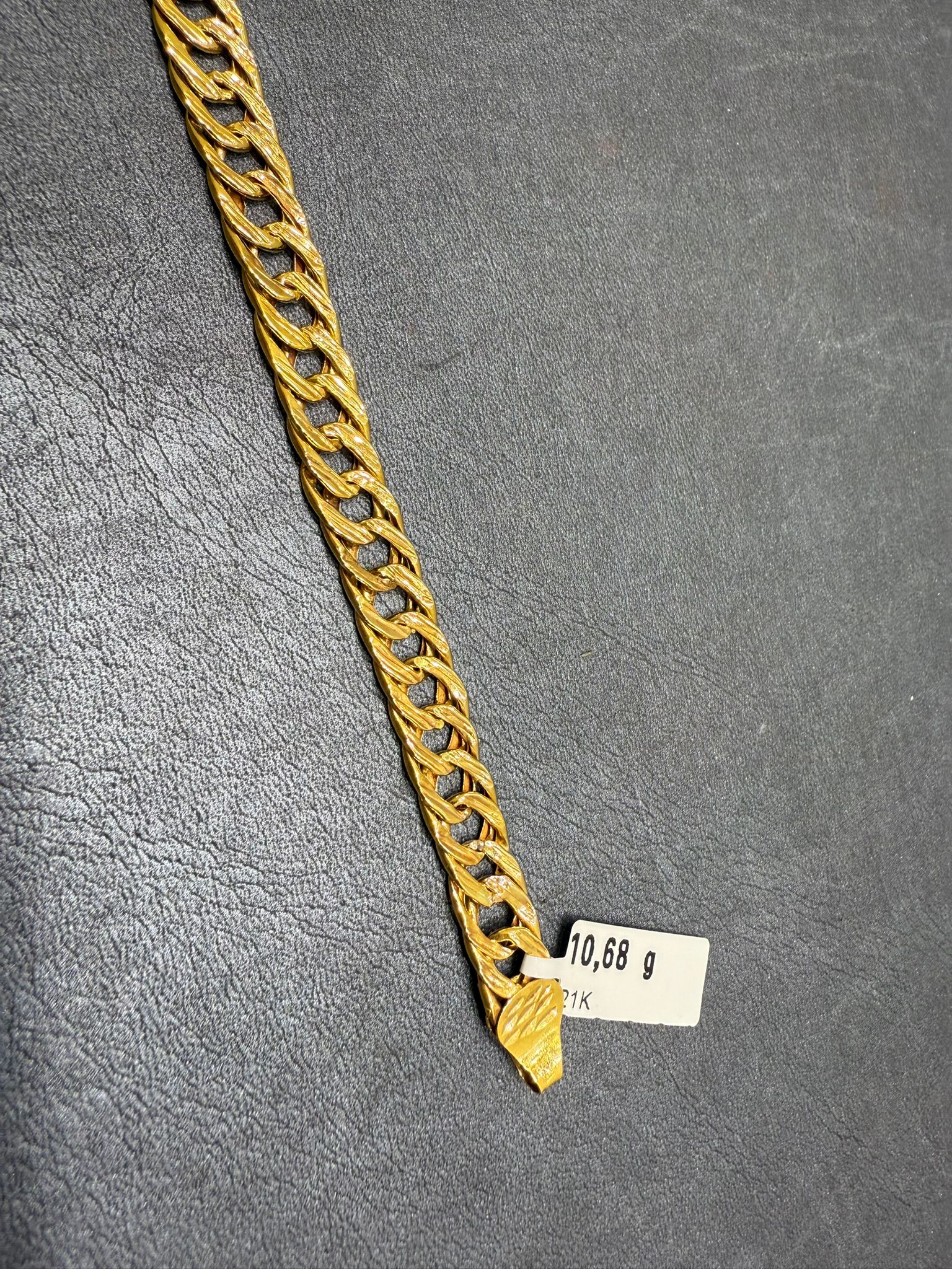 Ett elegant armband tillverkat i 21K guld som utstrålar tidlös stil och exklusivitet. Den höga guldhalten ger smycket en djup, varm färg och en naturlig glans som framhäver dess form och detaljer.