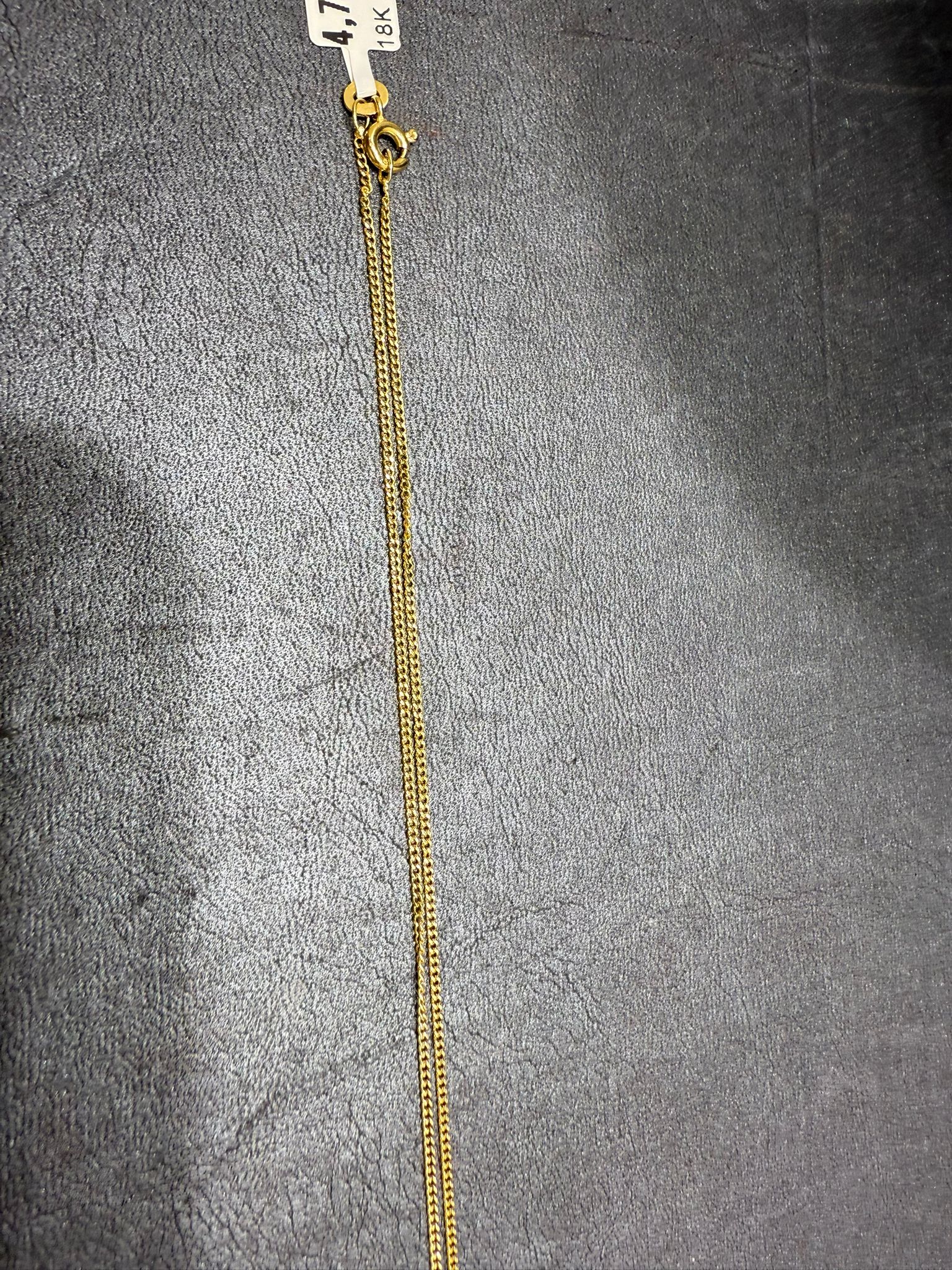 Detta romantiska halsband i 18K guld har en tunn och elegant kedja som pryds av ett hänge. Den stilrena designen gör smycket tidlöst och ger en subtil men meningsfull detalj.