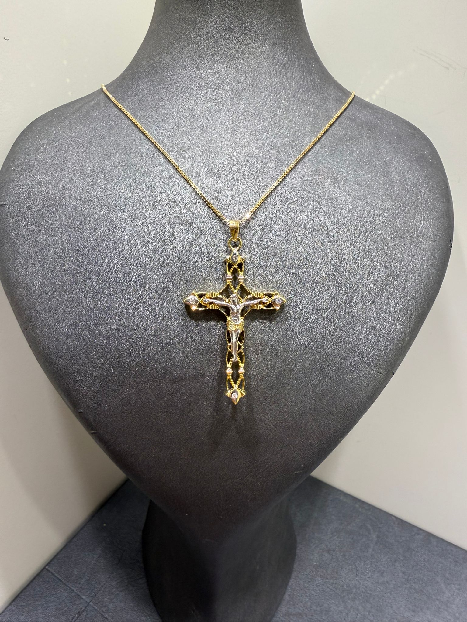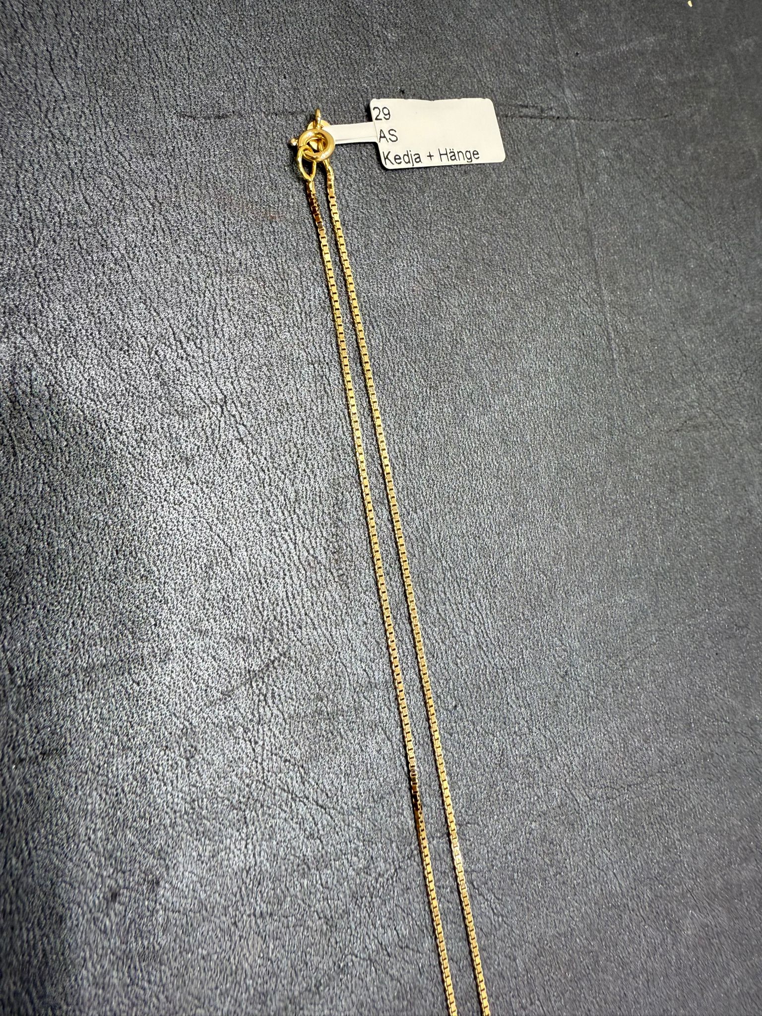 Detta halsband i 18K guld har en tunn och elegant kedja som pryds av ett klassiskt kors-hänge. Hänget ger smycket både symbolik och tidlös stil, med en subtil men iögonfallande detalj.
