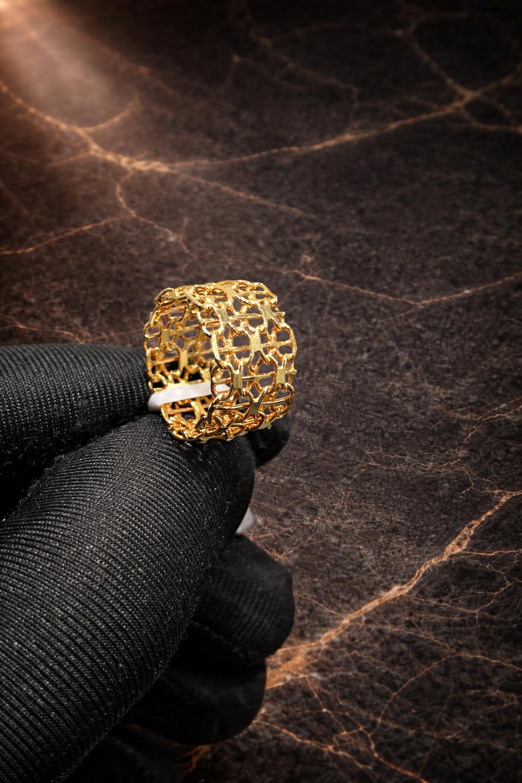 Elegant begagnad X-länk ring tillverkad i 18K guld. Varje ring har sin unika karaktär och charm, med små tecken på tidigare användning som ger den historia och personlighet. Perfekt för dig som vill bära en tidlös och exklusiv accessoar med genuin känsla.