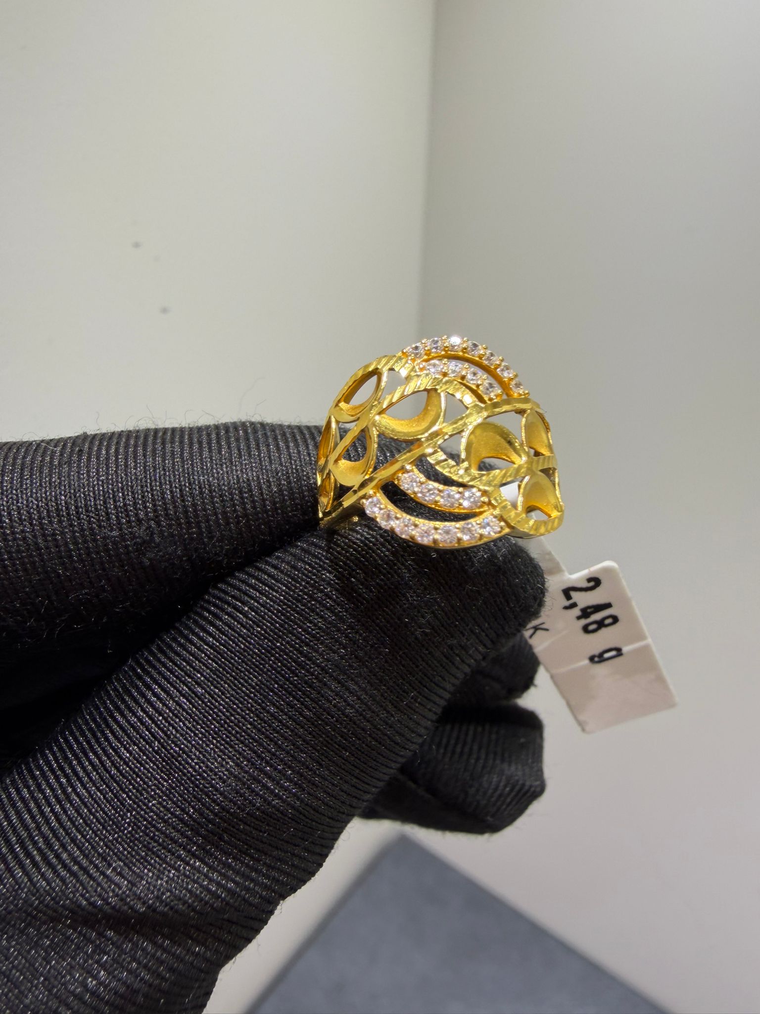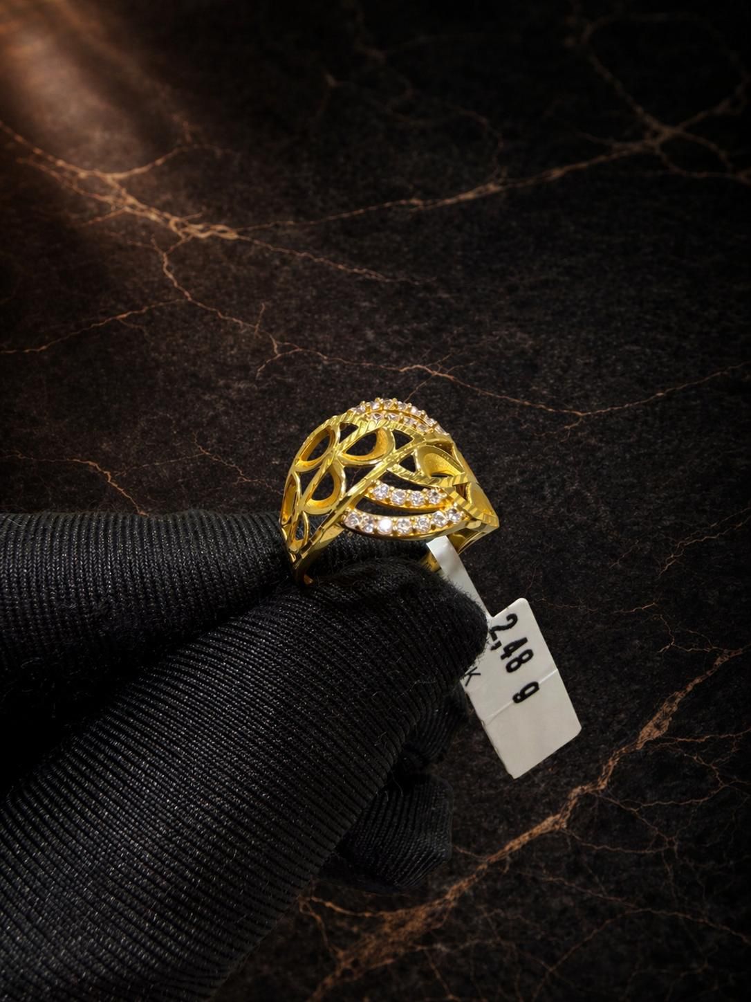 Elegant begagnad ring tillverkad i 21K guld. Varje ring har sin unika karaktär och charm, med små tecken på tidigare användning som ger den historia och personlighet. Perfekt för dig som vill bära en tidlös och exklusiv accessoar med genuin känsla.
