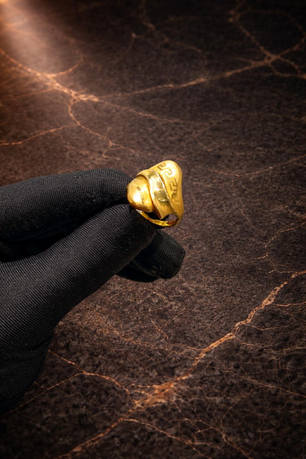Elegant begagnad ring tillverkad i 21K guld. Varje ring har sin unika karaktär och charm, med små tecken på tidigare användning som ger den historia och personlighet. Perfekt för dig som vill bära en tidlös och exklusiv accessoar med genuin känsla.