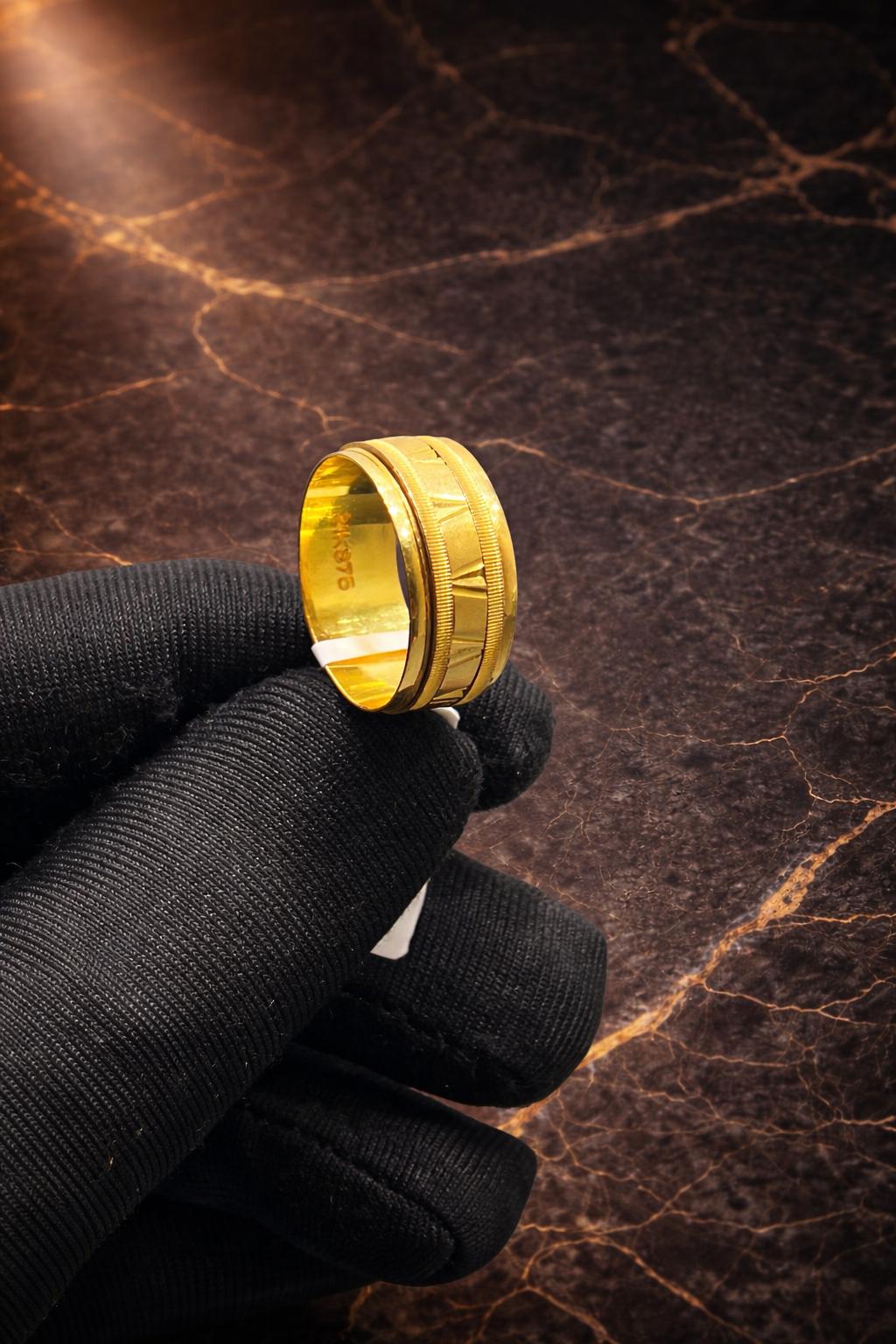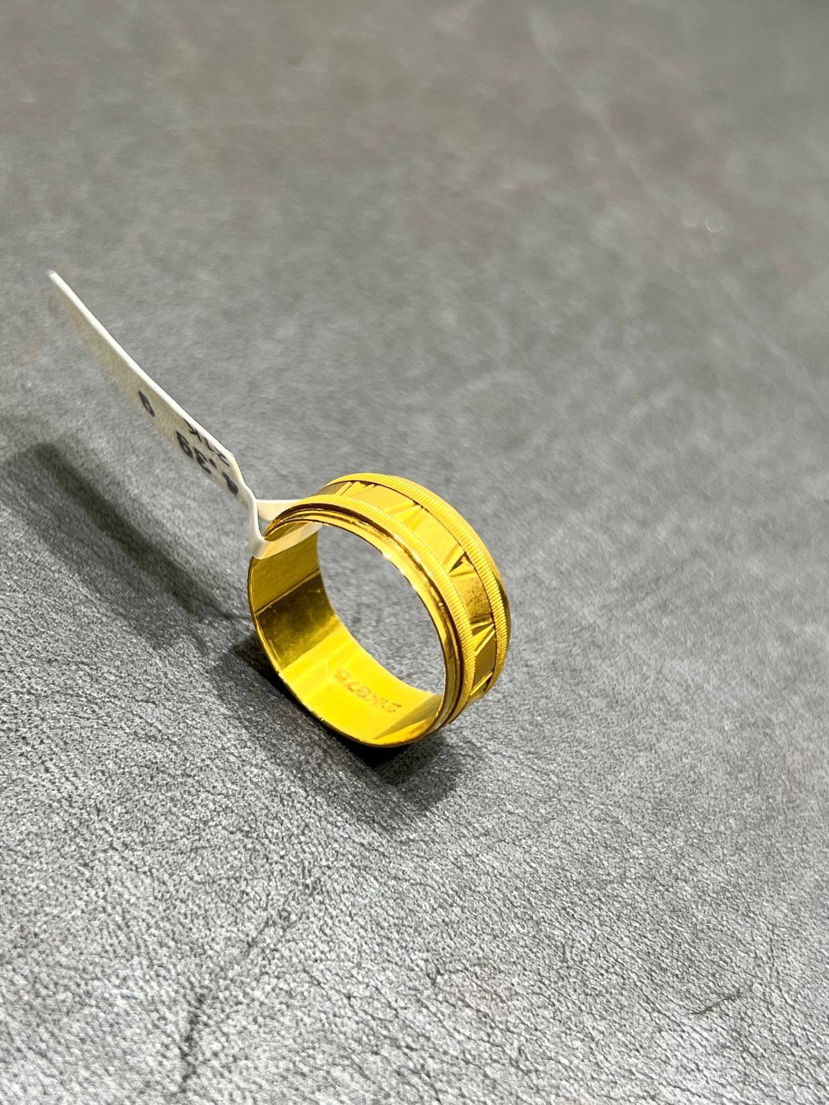 Elegant begagnad ring tillverkad i 21K guld. Varje ring har sin unika karaktär och charm, med små tecken på tidigare användning som ger den historia och personlighet. Perfekt för dig som vill bära en tidlös och exklusiv accessoar med genuin känsla.