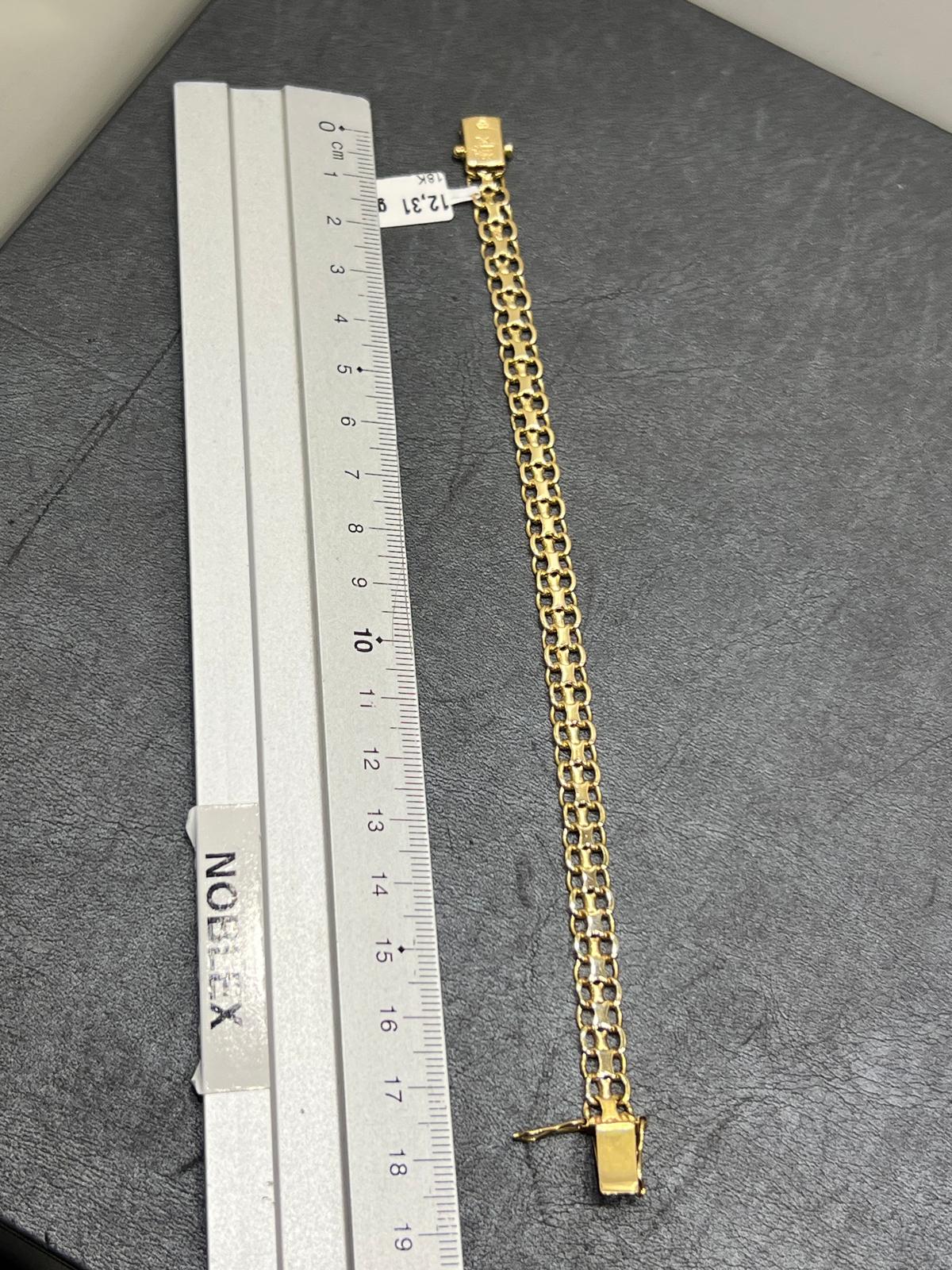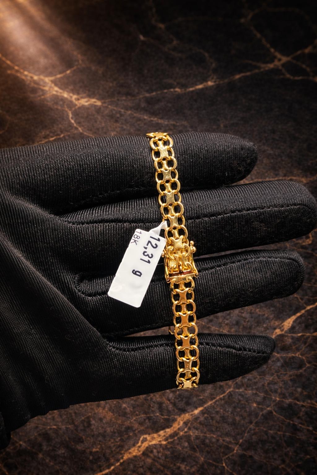 Detta eleganta armband i klassisk X-länk-design är tillverkat i äkta 18K guld och förenar både styrka och exklusiv skönhet. Den täta och karakteristiska länkningen ger armbandet en lyxig tyngd, fin glans och ett smidigt fall runt handleden.