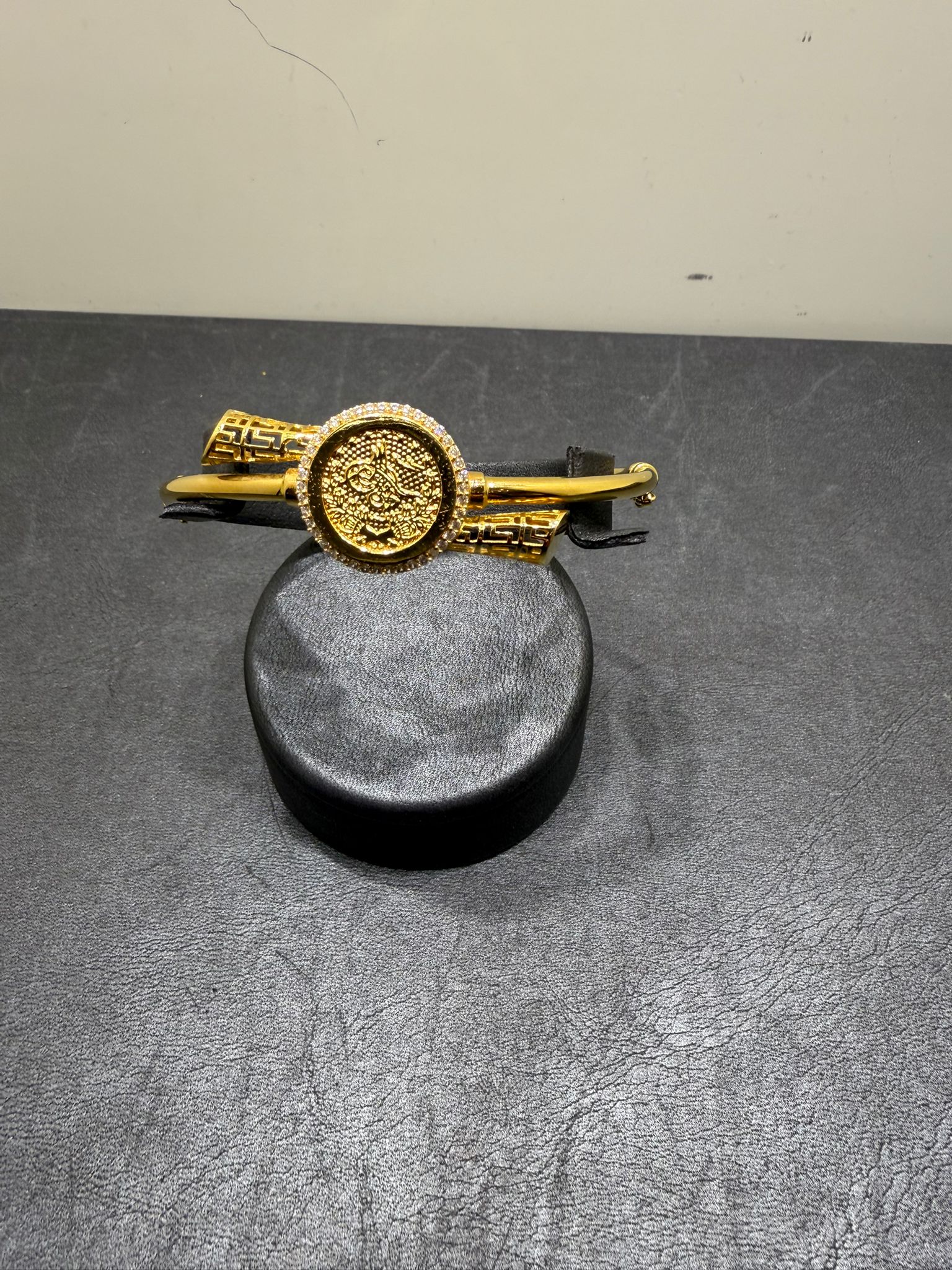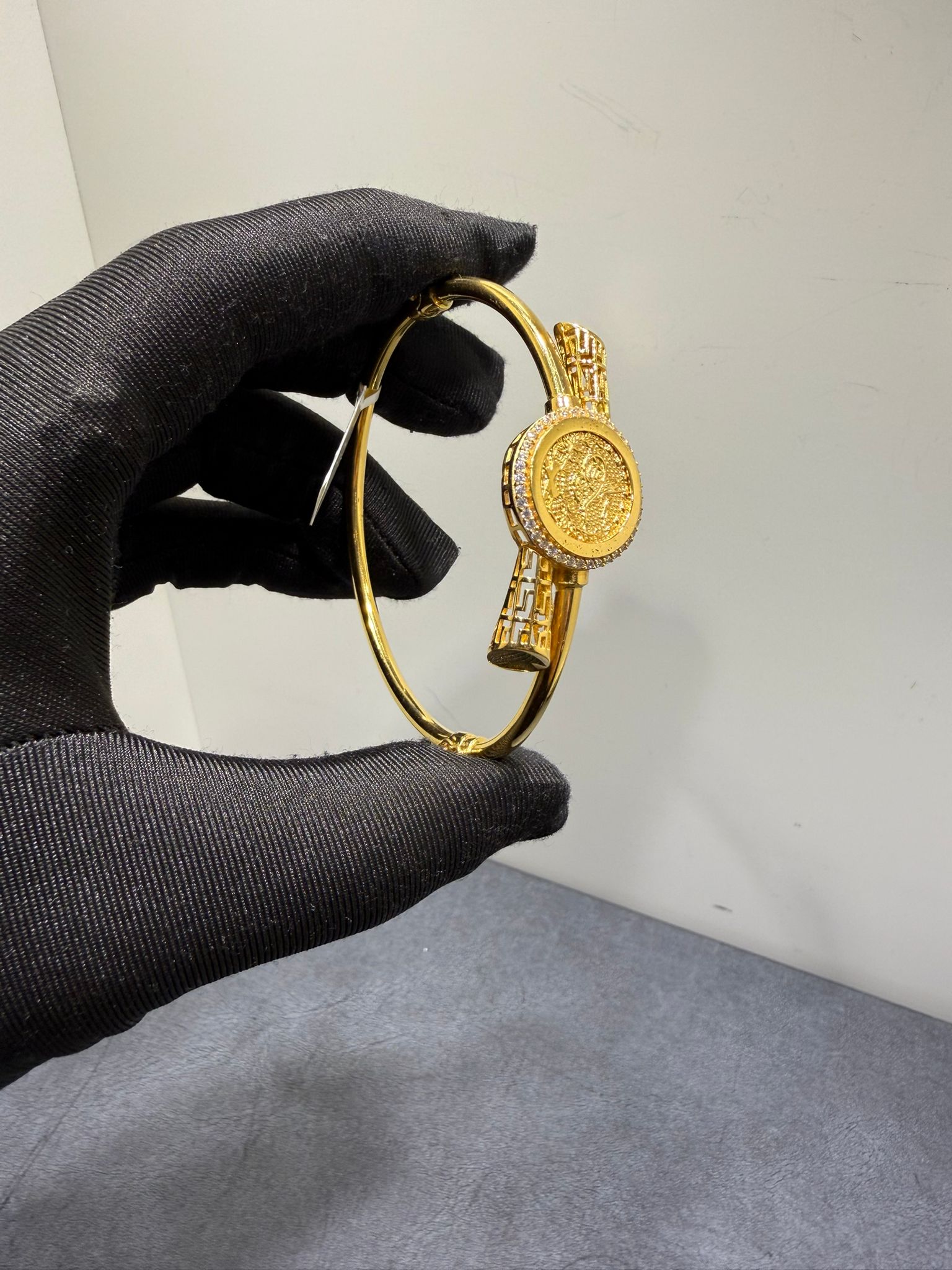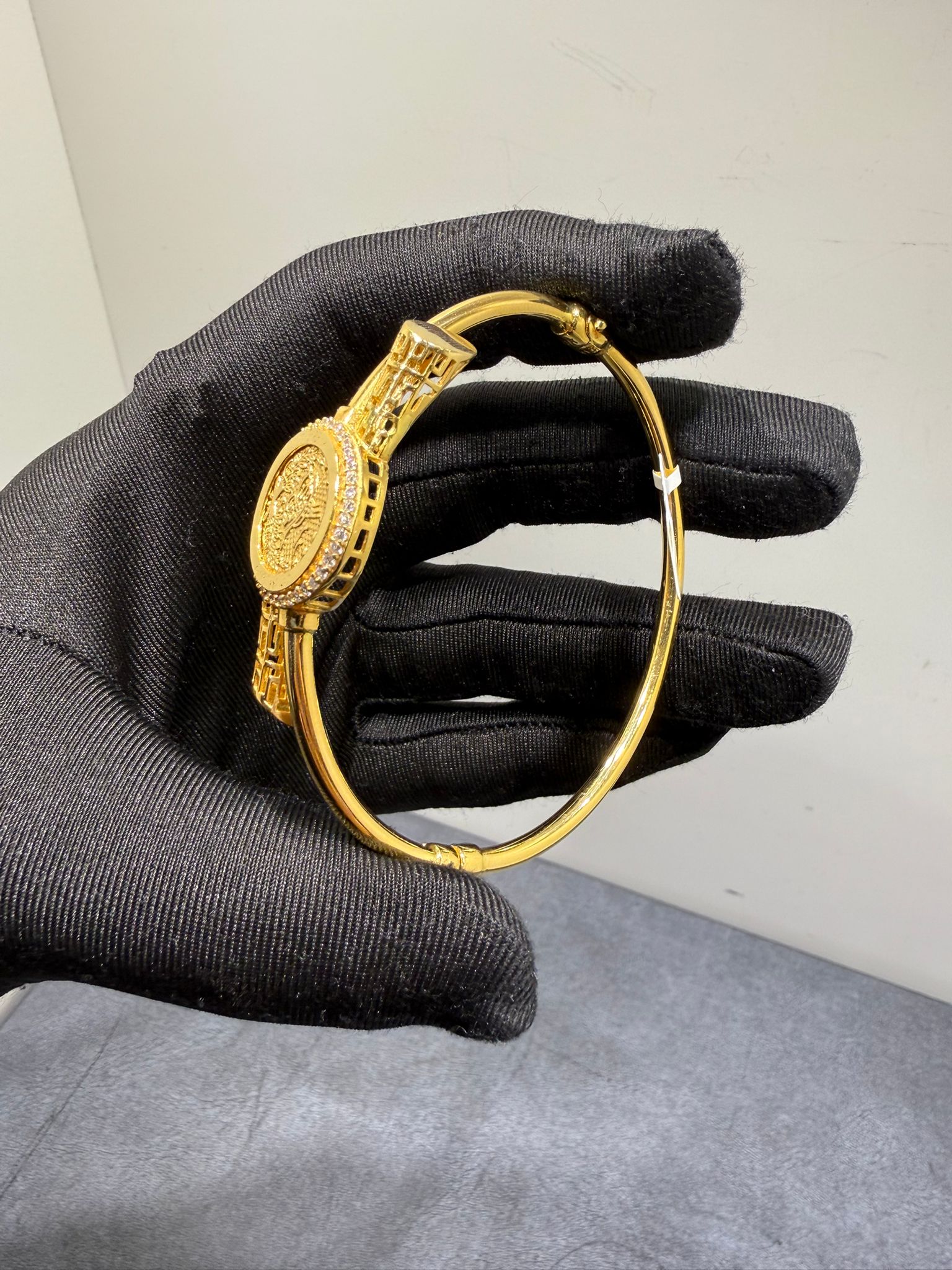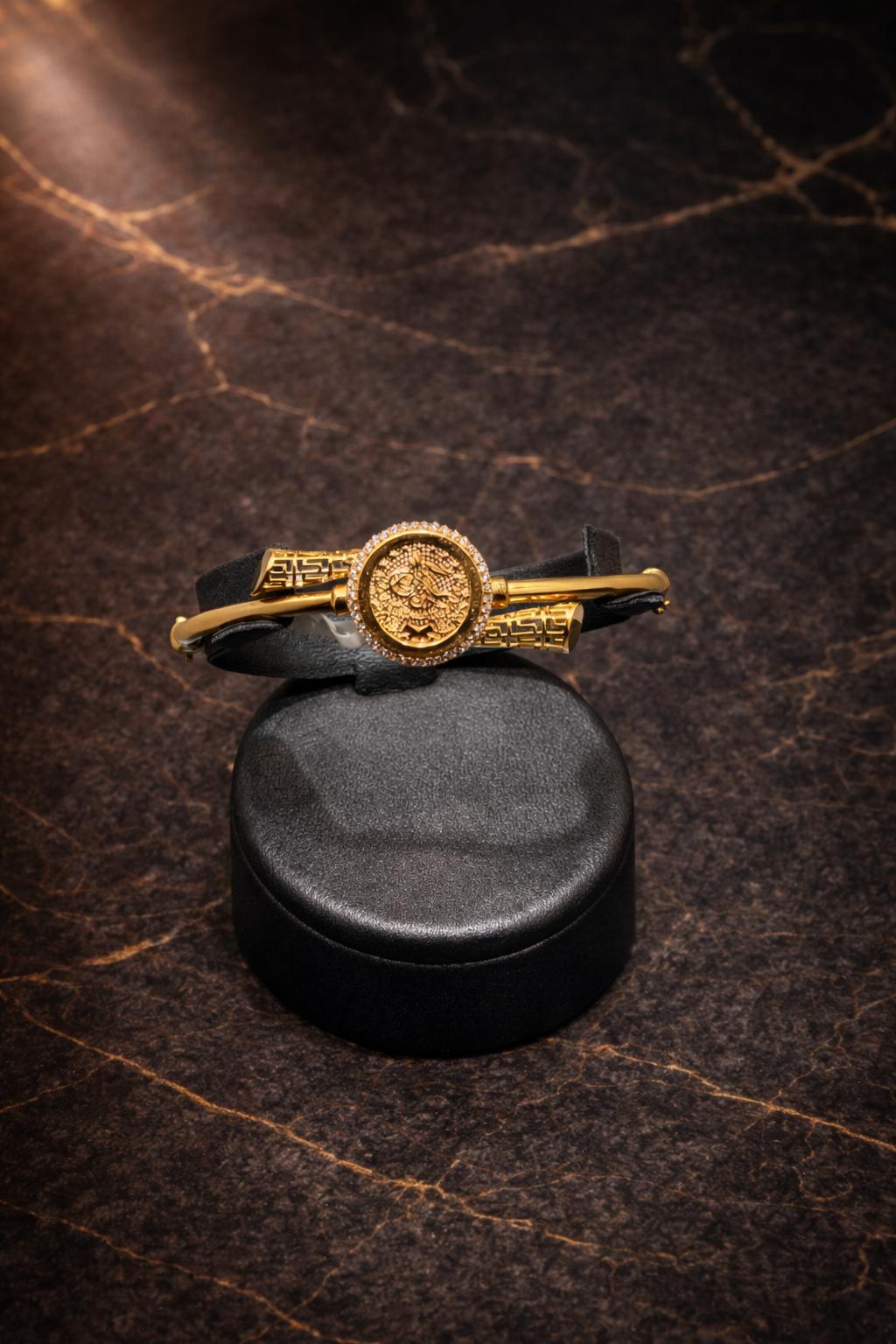Denna armring i äkta 21K guld är utsmyckad med ett turkisk lira-motiv som ger smycket en distinkt och kulturellt inspirerad karaktär. Den höga guldhalten ger en varm lyster och ett exklusivt uttryck.
