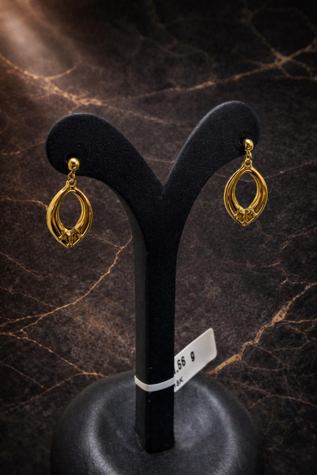 Ett elegant par örhängen tillverkat i 18K guld som kombinerar tidlös stil med hög kvalitet. Den varma guldfärgen och den noggrant utförda designen ger ett sofistikerat intryck som passar både till vardags och vid festliga tillfällen.