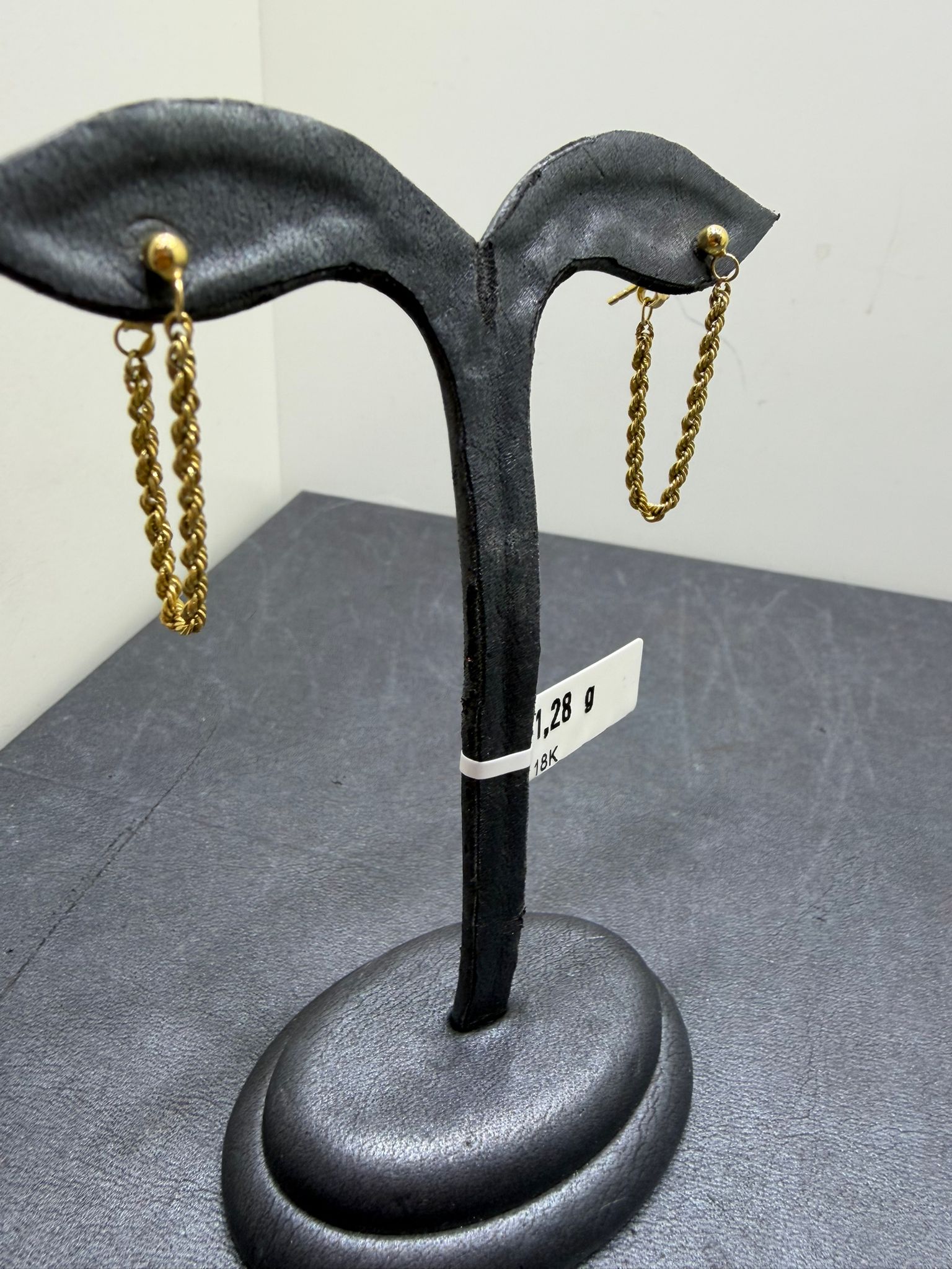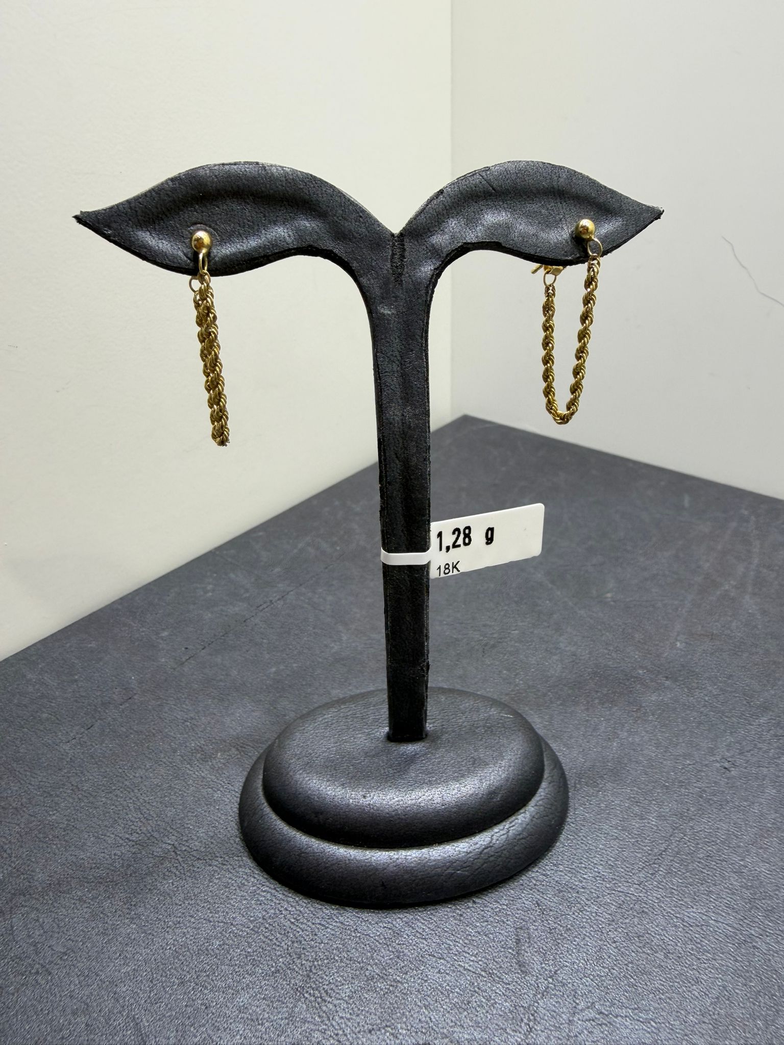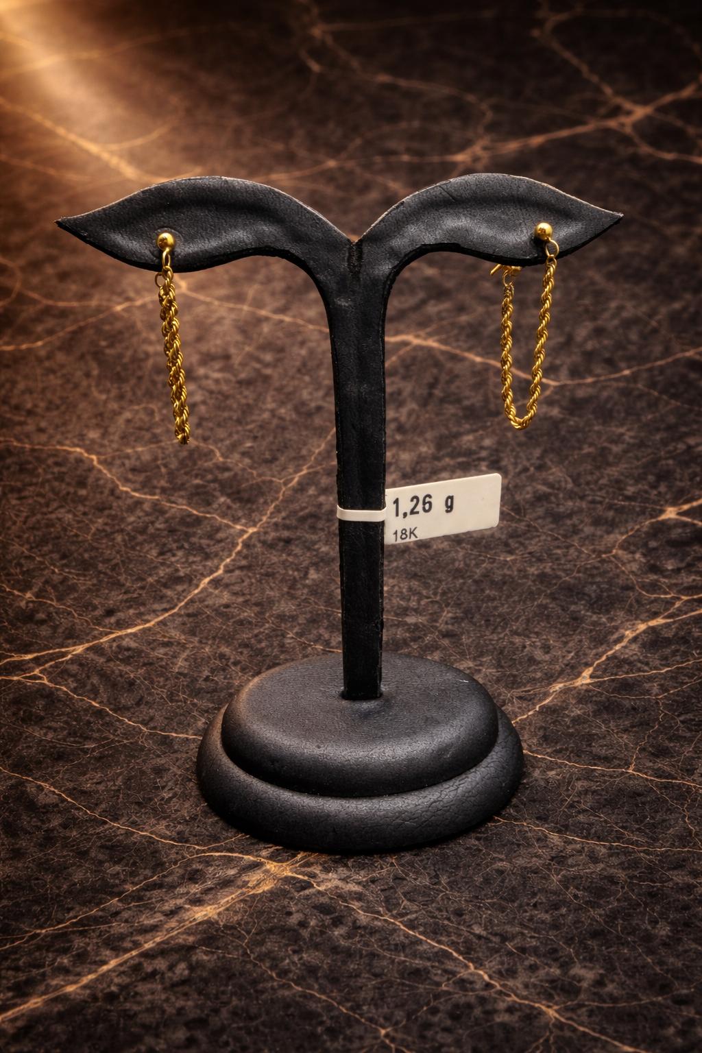 Ett elegant par örhängen tillverkat i 18K guld som kombinerar tidlös stil med hög kvalitet. Den varma guldfärgen och den noggrant utförda designen ger ett sofistikerat intryck som passar både till vardags och vid festliga tillfällen.