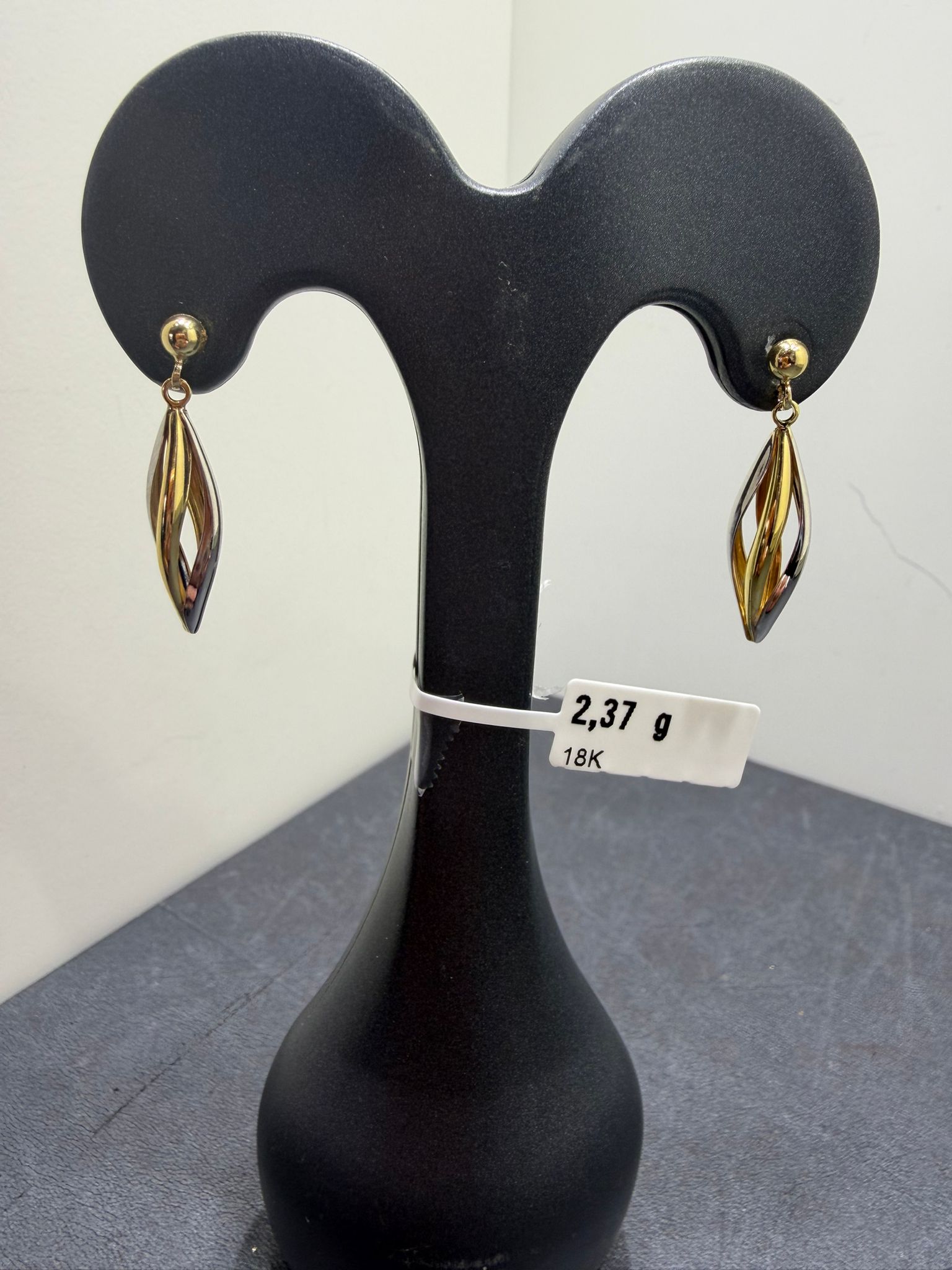 Ett elegant par örhängen tillverkat i 18K guld som kombinerar tidlös stil med hög kvalitet. Den varma guldfärgen och den noggrant utförda designen ger ett sofistikerat intryck som passar både till vardags och vid festliga tillfällen.