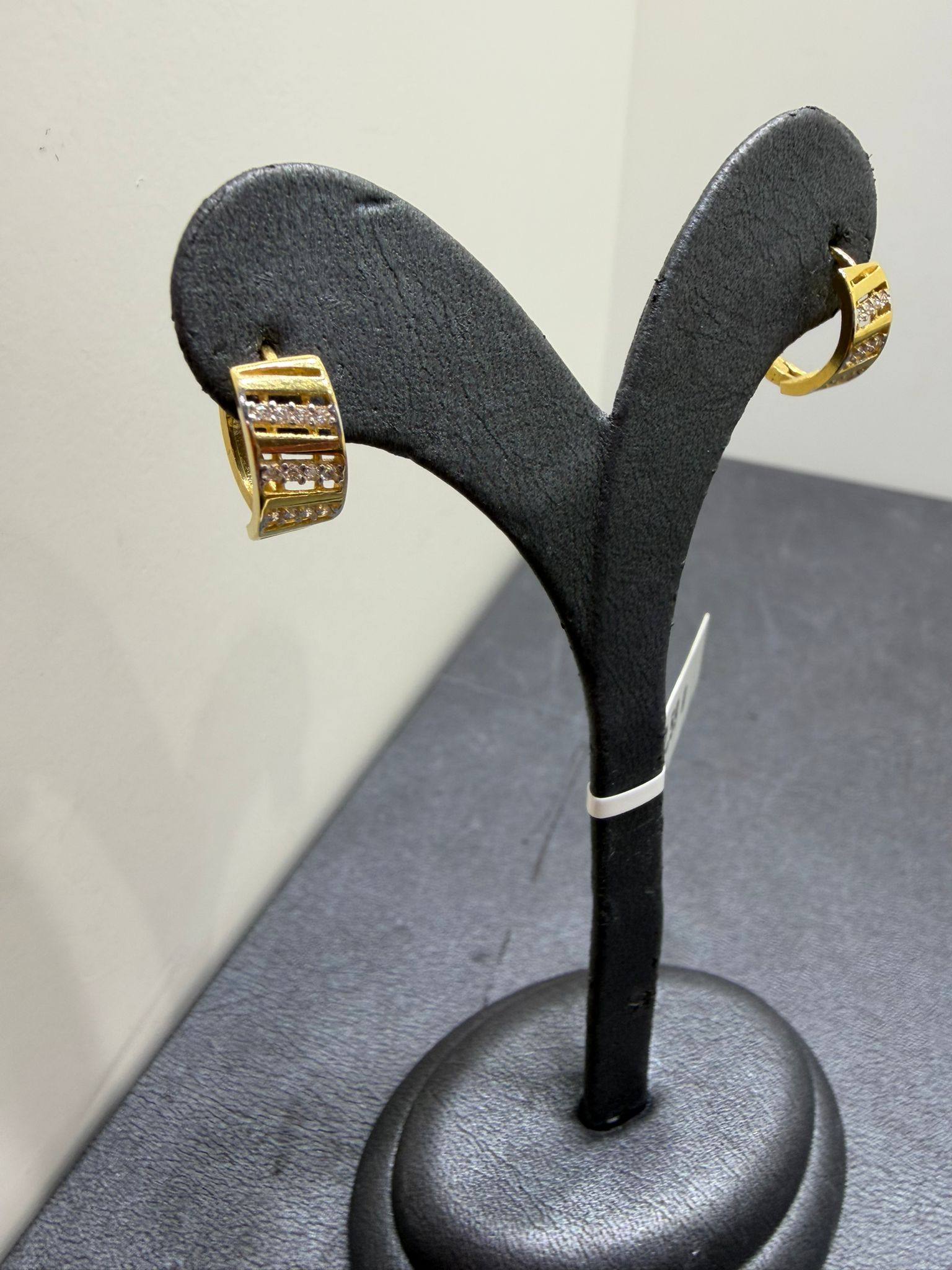 Ett elegant par örhängen tillverkat i 18K guld som kombinerar tidlös stil med hög kvalitet. Den varma guldfärgen och den noggrant utförda designen ger ett sofistikerat intryck som passar både till vardags och vid festliga tillfällen.