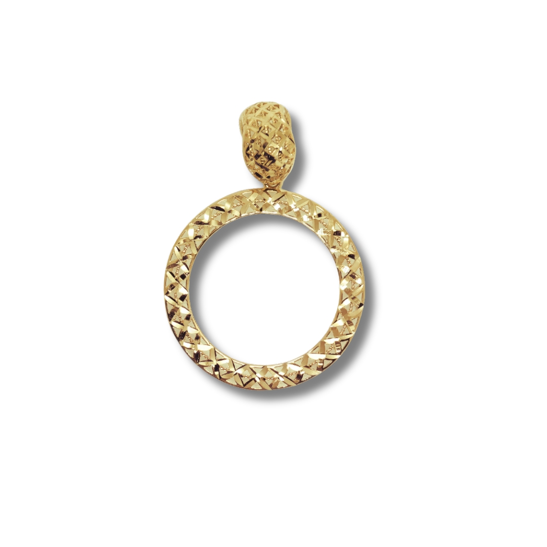 Guldmynten köps separat och kan monteras kostnadsfritt av oss, vilket gör det enkelt att skapa ett personligt smycke. Hänget är kompatibelt med guldmynten Ottoman Empire-RESAT 100 samt standard Brittisk Guld Sovereign (8 gram).
