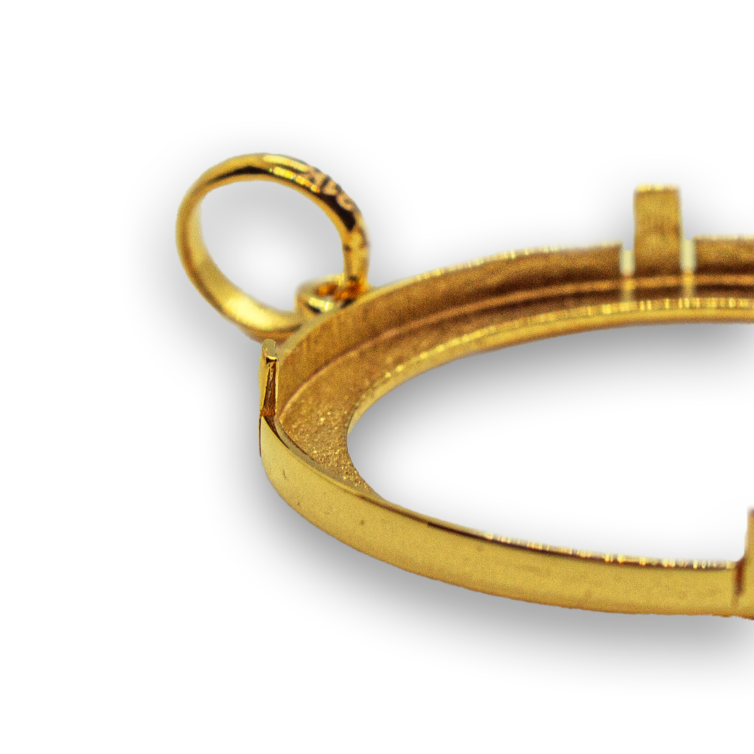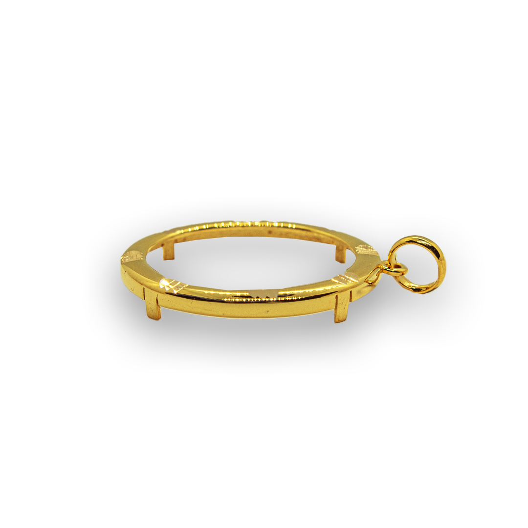 Guldmynten köps separat och kan monteras kostnadsfritt av oss, vilket gör det enkelt att skapa ett personligt smycke. Hänget är kompatibelt med guldmynten Ottoman Empire-RESAT 100 samt standard Brittisk Guld Sovereign (8 gram).