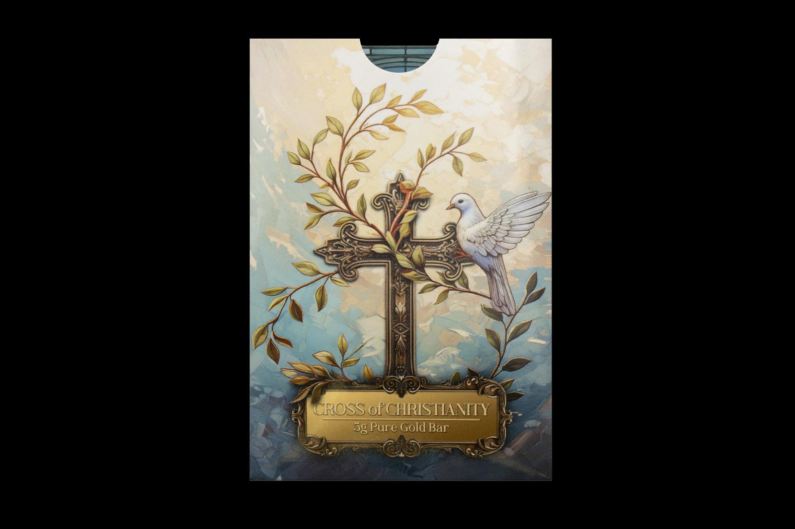 Baksidan visar ett vackert graverat kristet kors, omslutet av intrikata blommönster och ornamentik inspirerad av klassisk katedralarkitektur. Motivet speglar korsets centrala betydelse som symbol för tro, försoning och evigt liv enligt den kristna traditionen.
