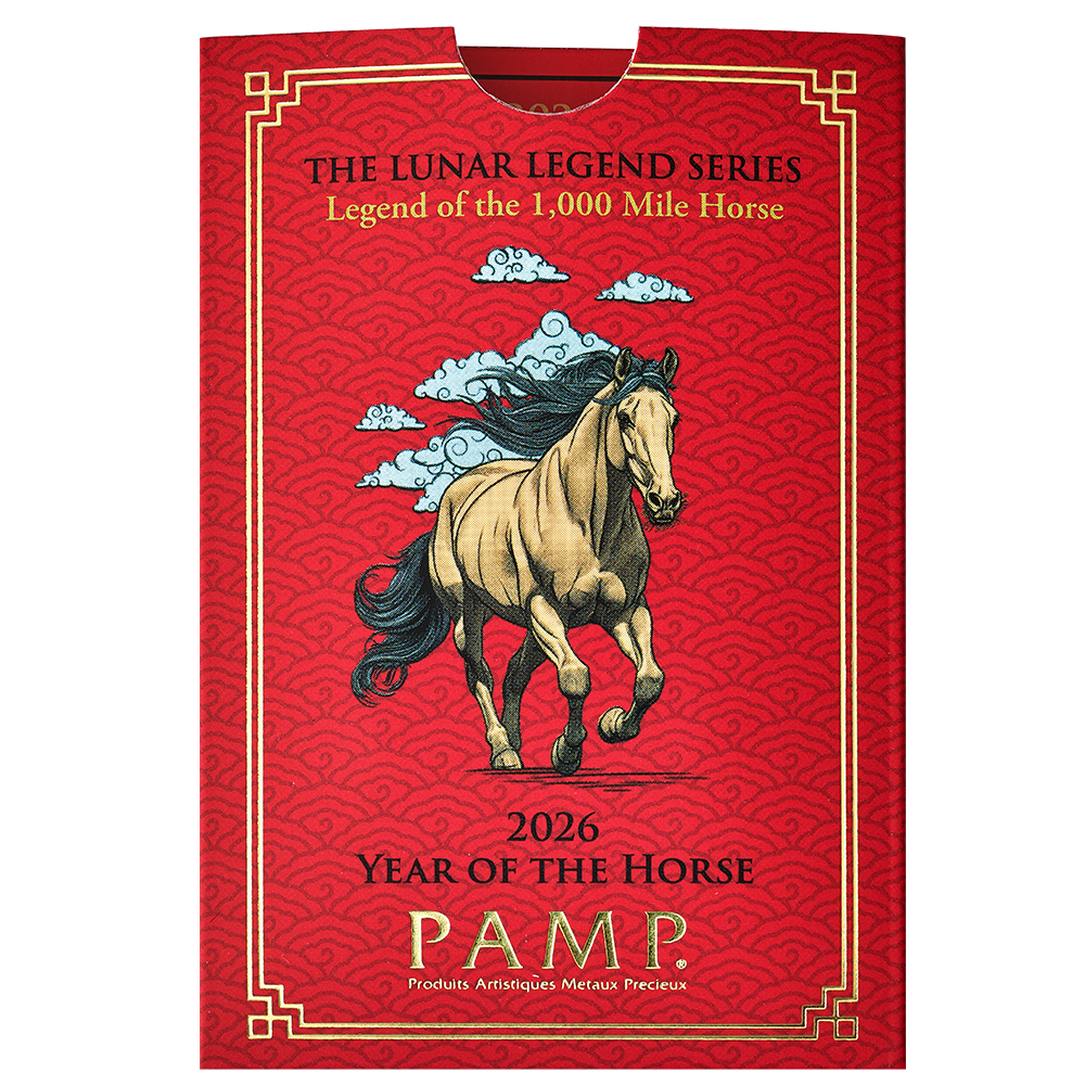 Ge dig ut på en resa in i hjärtat av den kinesiska mytologin med den exklusiva PAMP Lunar Horse 2026 1oz guldtackan från den världsberömda tillverkaren PAMP Suisse. Denna guldtacka hyllar det majestätiska Hästens år, en symbol för frihet, styrka och framgång, och finns nu tillgänglig att köpa hos Noblex.